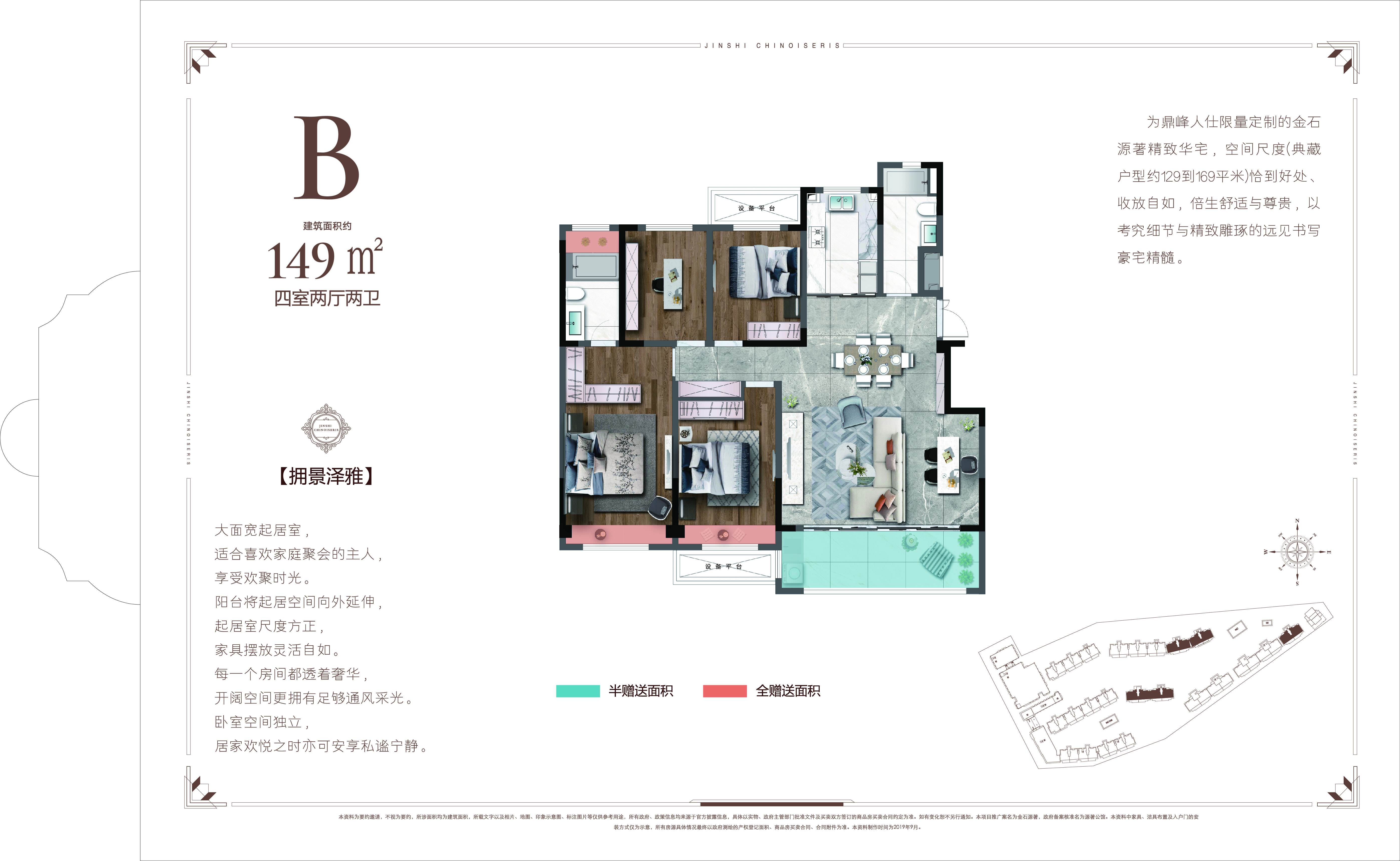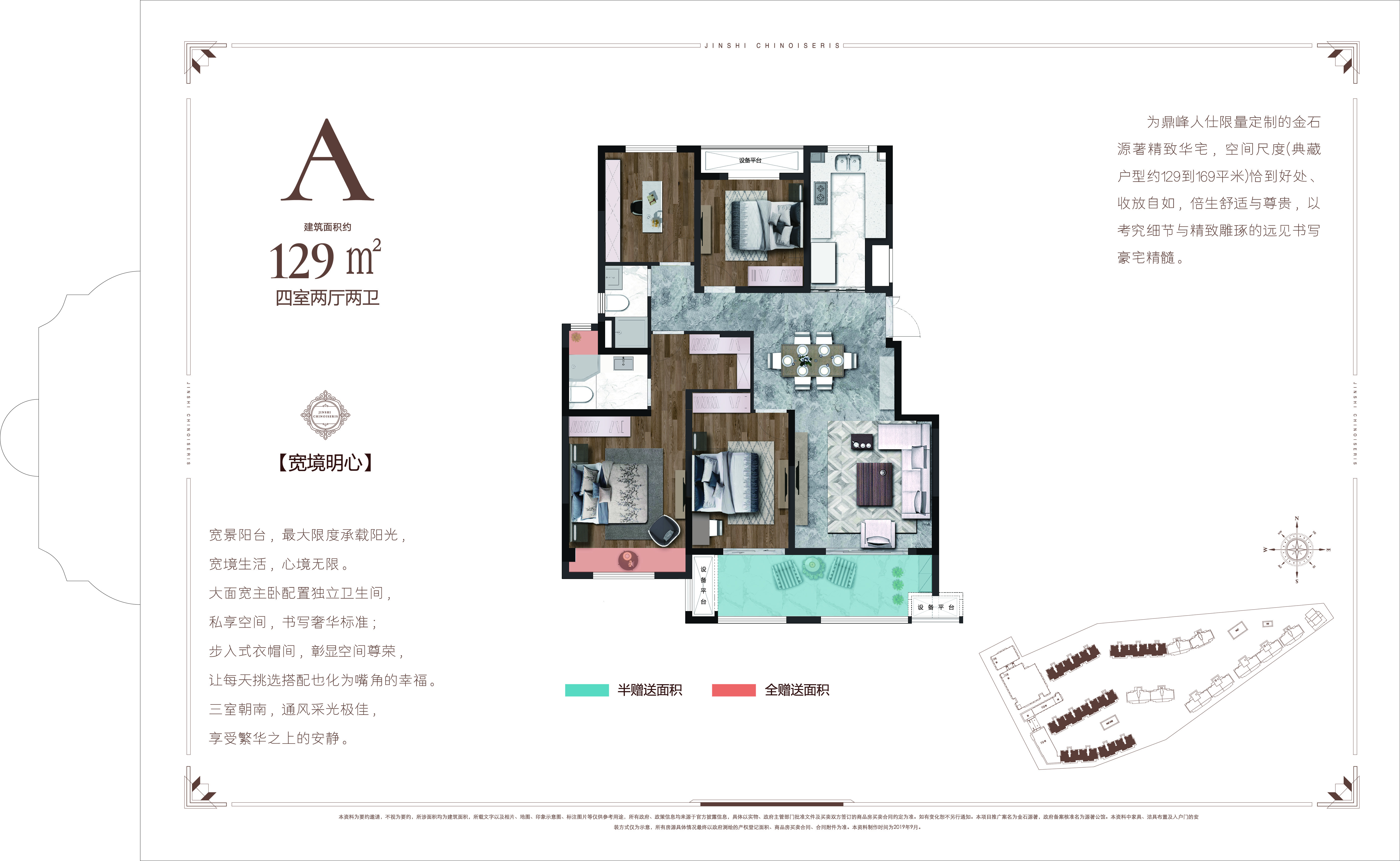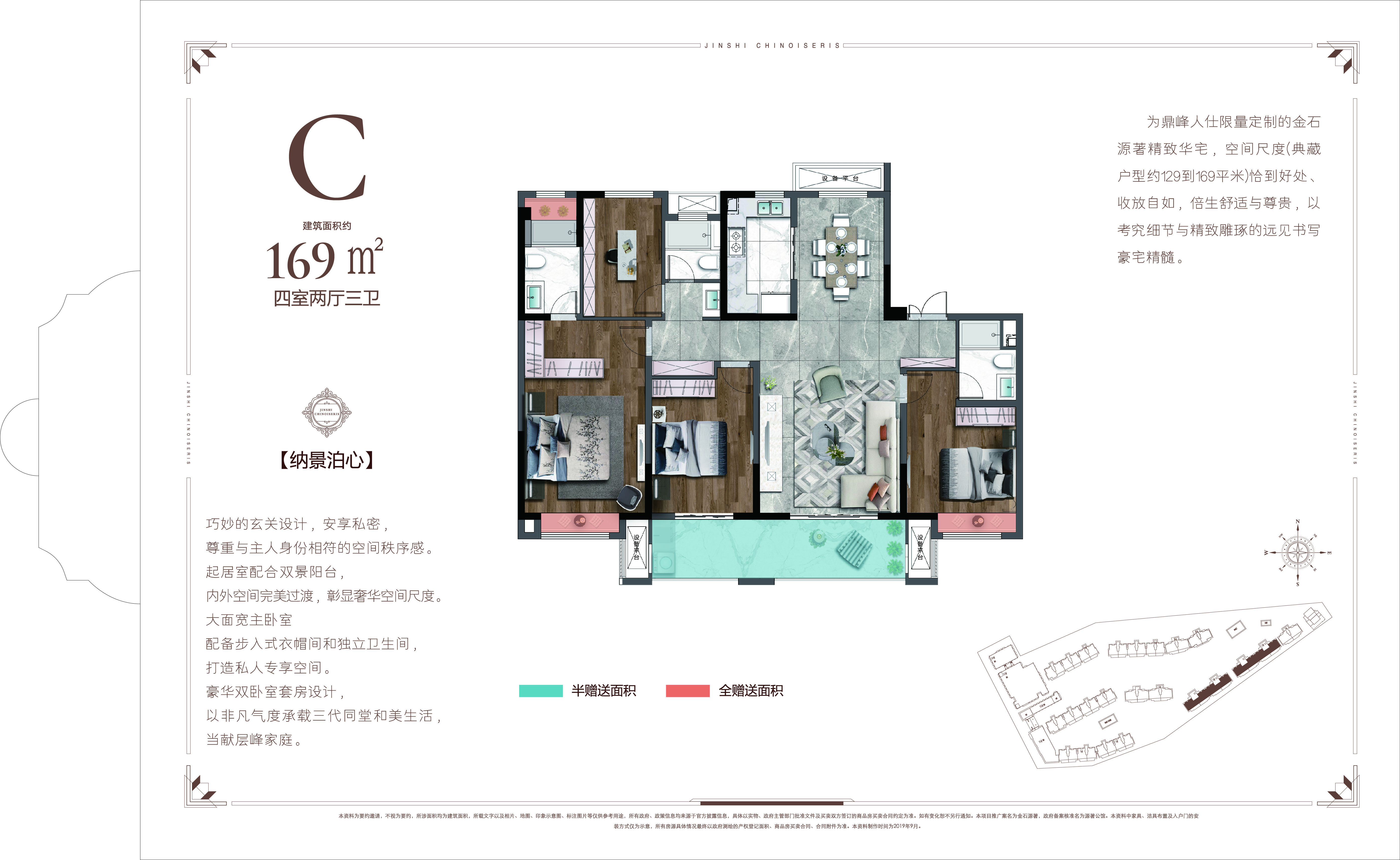 金石源著是金石置业打造的海安第七个高端住宅项目,也是金石第四代全新产品,项目位于人民西路,占据人民路商圈、城市广场商圈、文峰商圈3大商圈,人民医院、中医院两大医院保驾护航,拥有海安优质教育资源——明道小学、紫石中学,项目沿线5公里河道自然景观公园、东洲城市公园,在主城里可以享受一切便捷的生活。 整个项目依托景观运河而建,不仅地段优越,且享受海安唯数不多的自然河景。设计为新中式建筑风格,结合东方文化以及西方美学,享受现代感空间设计的同时,保留人文高贵气息。项目占地约4.2万方,总建筑面积约10万方,仅打造8栋新中式住宅组成,全部采用人车分流,智能入库。配备约6000平的商业配套,含星级的双层菜市场2500平。特色园林一环一轴六重景,四季有景、三季有花、花满香园的居住环境,春景樱花大道、夏景紫薇合欢步道、秋景丹桂木槿园、冬景幽幽竹林、腊梅闻香识梅园,充分结合中式文化底蕴。约129㎡3+1灵动四房、149㎡宽厅四房、169㎡奢景观园大宅三种户型组成。小区建成共计400多户,属于低容积率、低建筑密度、高绿化、高品质,高居住感的精品社区。